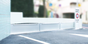 広い間口が複数ある地下駐車場や倉庫などは、冠水・浸水が生じた場合に雨水の流量が多くなるため、著しい浸水被害が懸念されます。水害発生時の漏水を最小限に抑えるためには、できるだけ短時間で多くの出入り口に止水板を設置しなくてはなりません。そのような場合は、シートタイプの防水板である「防水シートⅢ」を適用するのが効果的です。