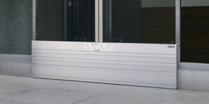 浸水の恐れがある建築物の出入口などに設置するもので、以下に示す機能を有するもの。①浸水に耐える材質 ②取り外しまたは移動が可能なもの